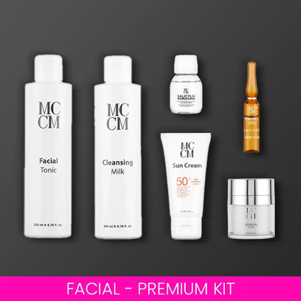 This advanced routine combines six expertly formulated products that work in synergy to purify, rebalance and rejuvenate the skin from the very first use. Begin with the Cleansing Milk and Facial Tonic to gently remove impurities and tone the skin. The Salicylic BHA Liquid Exfoliant refines pores and promotes cell renewal, preparing the skin to absorb the potent antioxidant power of Vitamin C 20% Ampoules, which brighten and revitalise dull complexions. The Atopical Cream then calms, hydrates and restores the skin barrier, while the SPF 50+ Oil Free Cream ensures lasting protection against UV damage and premature ageing.