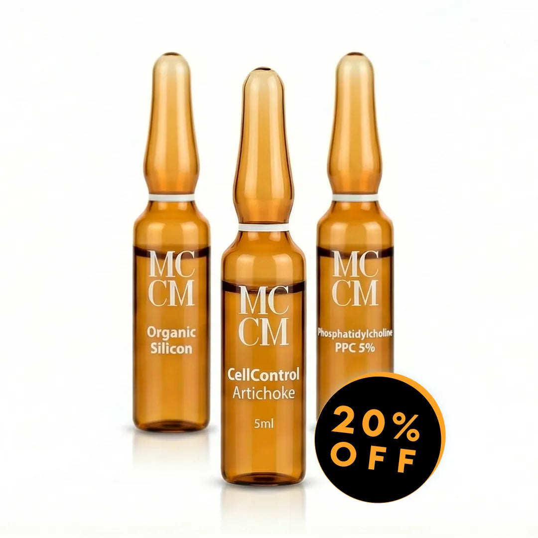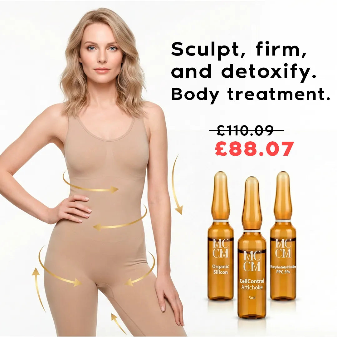 • MCCM Medical Cosmetics - Phosphatidylcholine Ampoules (20 x 5ml): A powerful lipolytic solution that helps to dissolve and eliminate localised fat, effectively reshaping the body contour.